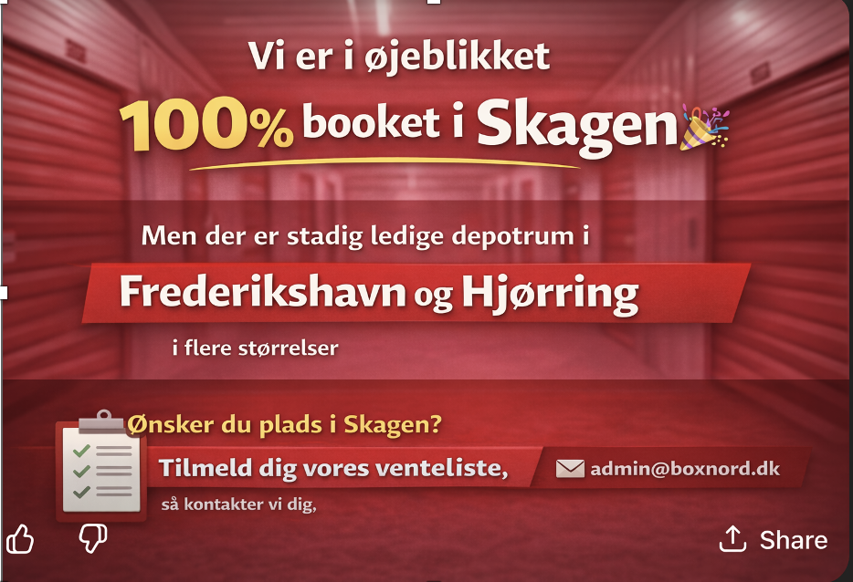 Ønsker du plads i Skagen? Tilmeld dig vores venteliste ved at skrive ind til Admin@boxnord.dk, så kontakter vi dig, så snart der bliver et rum ledigt.