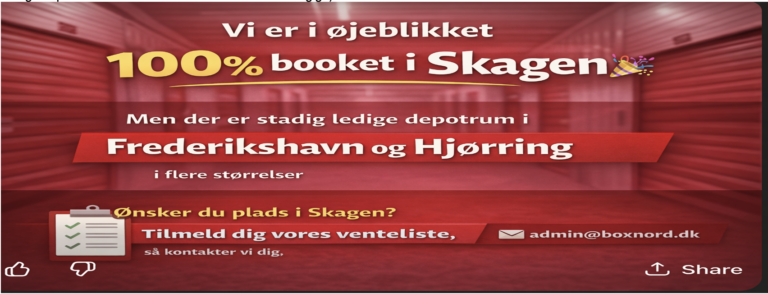 Ønsker du plads i Skagen? Tilmeld dig vores venteliste ved at skrive ind til Admin@boxnord.dk, så kontakter vi dig, så snart der bliver et rum ledigt.